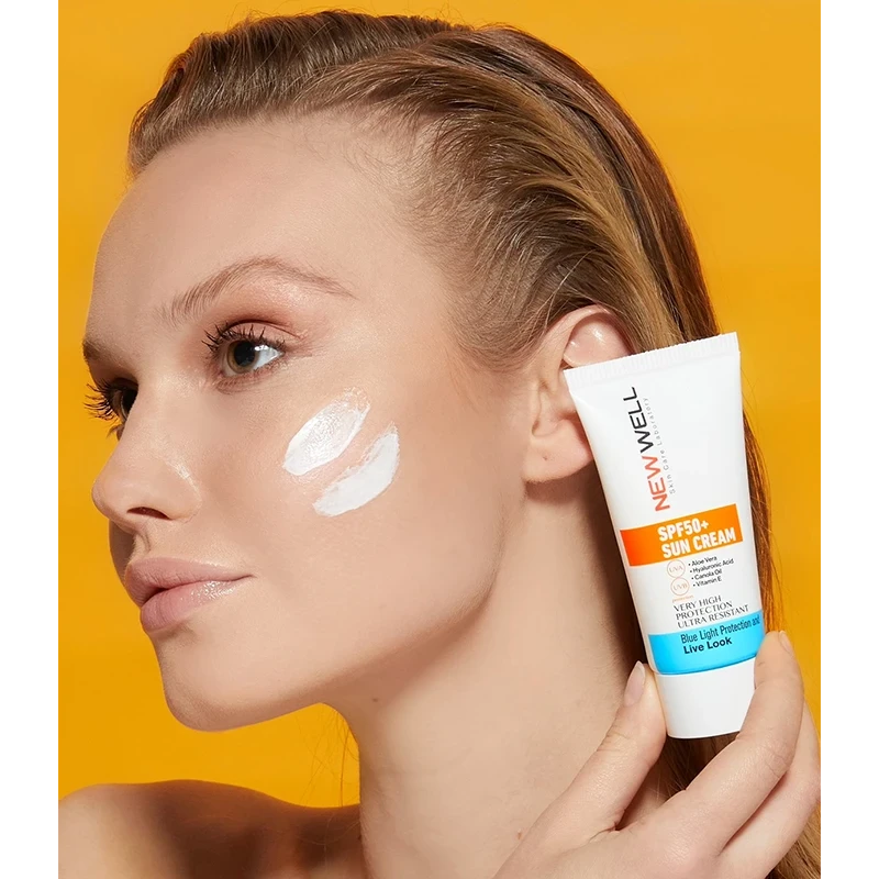 با اس پی اف spf 50 حاوی هیالورونیک اسید و ویتامین E حاوی عصاره آلوئه ورا و روغن کانولا حاوی